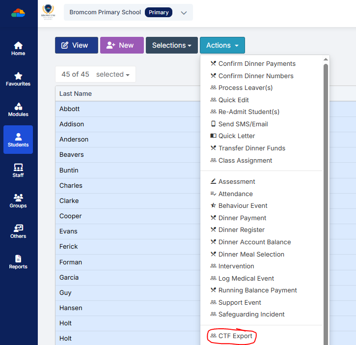 Once you have entered in all your marks you need to create a CTF file to send to the National Assessment Agency