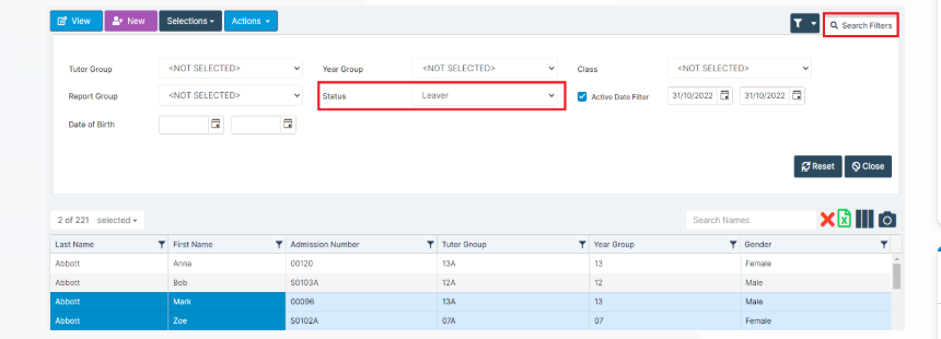 From there, press Search Filters on the top right and change the Status to Leaver.