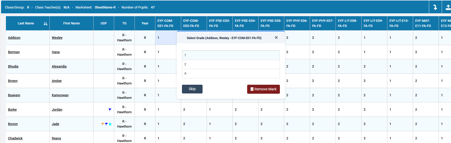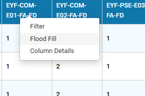 Alternatively if you have a number of pupils with the same mark you can right click on the column heading and “Flood fill”