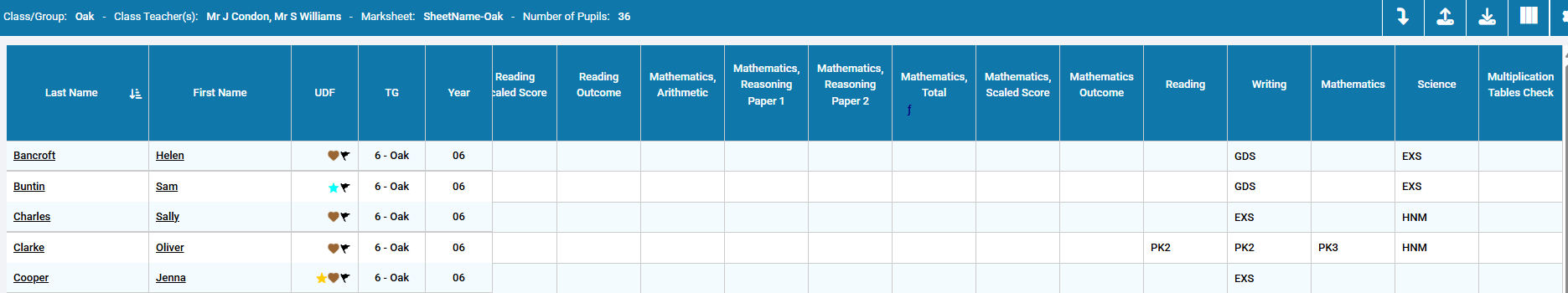 2. Alternatively if you have a number of pupils with the same mark you can right click on the column heading and “Flood fill”