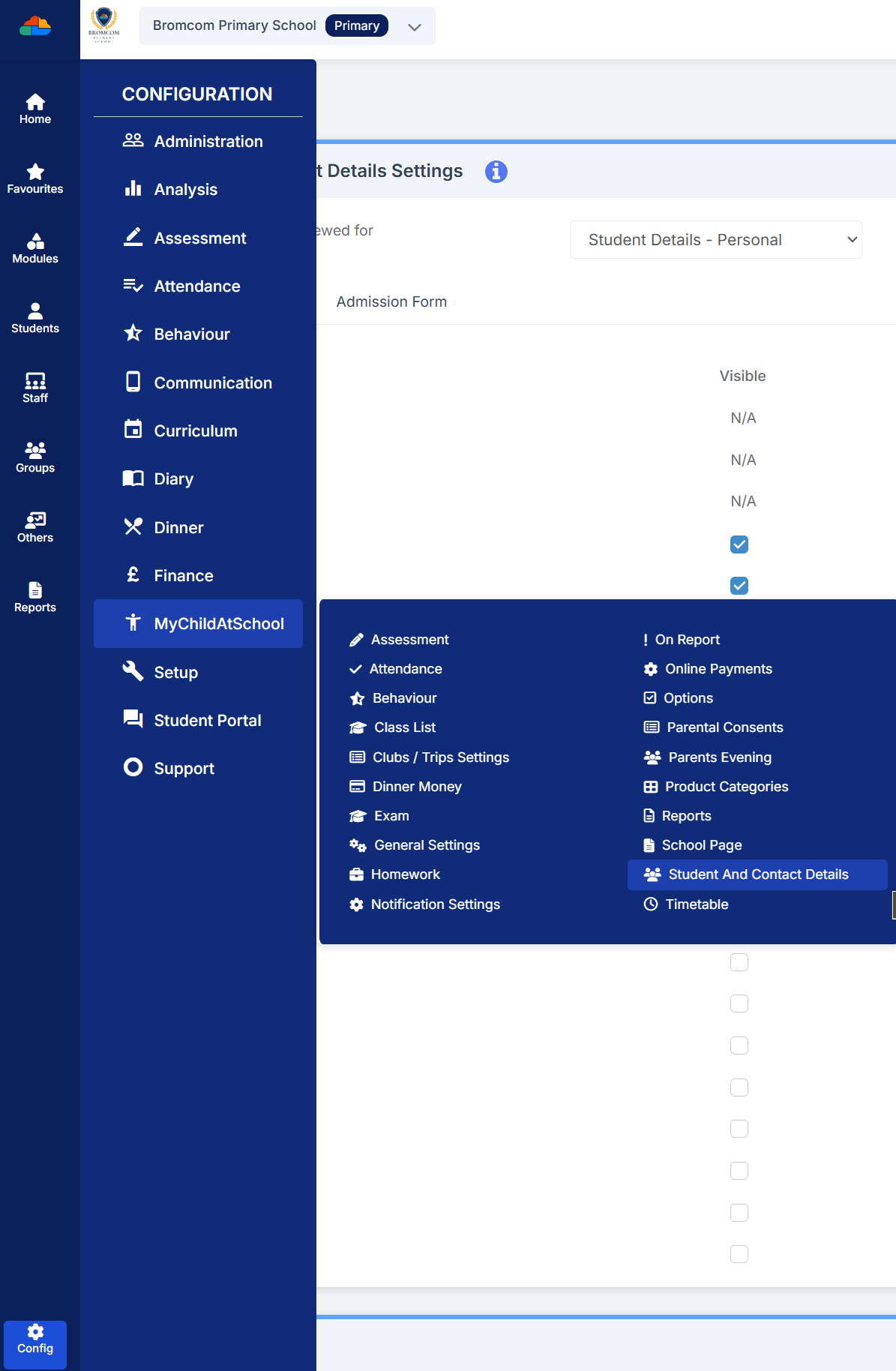 You can configure data collection sheets under Config>MyChildAtSchool>Students And Contact Details Settings