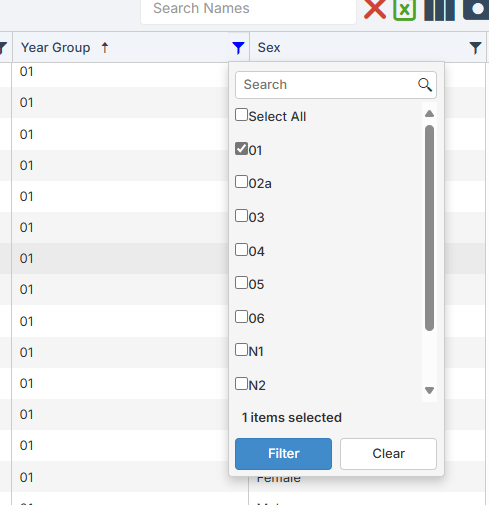 To add any Year 2 pupils go back to the filter option next to Year Group and add Year 2, then click filter