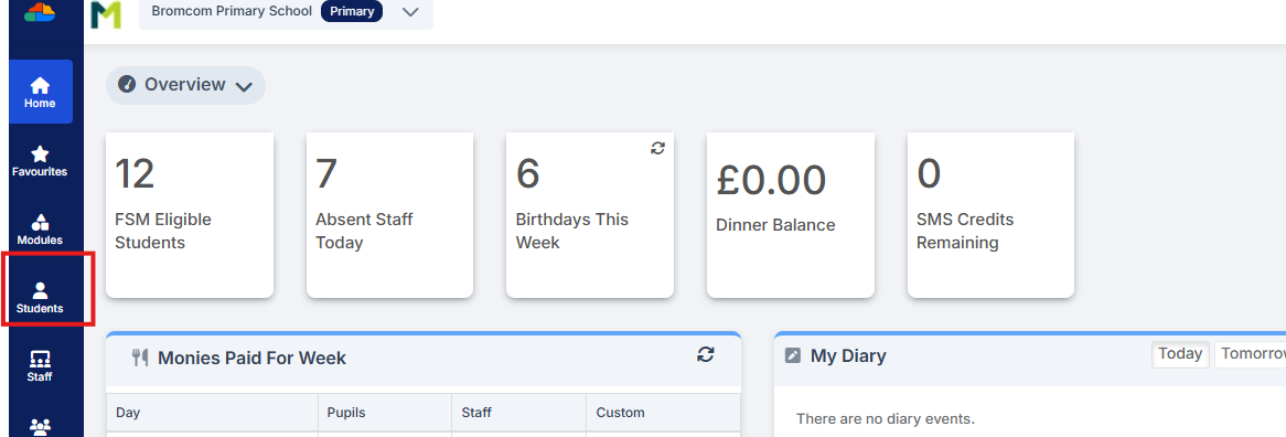 To create a CTF that includes all your Year 1 pupils and any Year 2 pupils that have retaken Phonics this year, first go to the student area on the left hand side menu.
