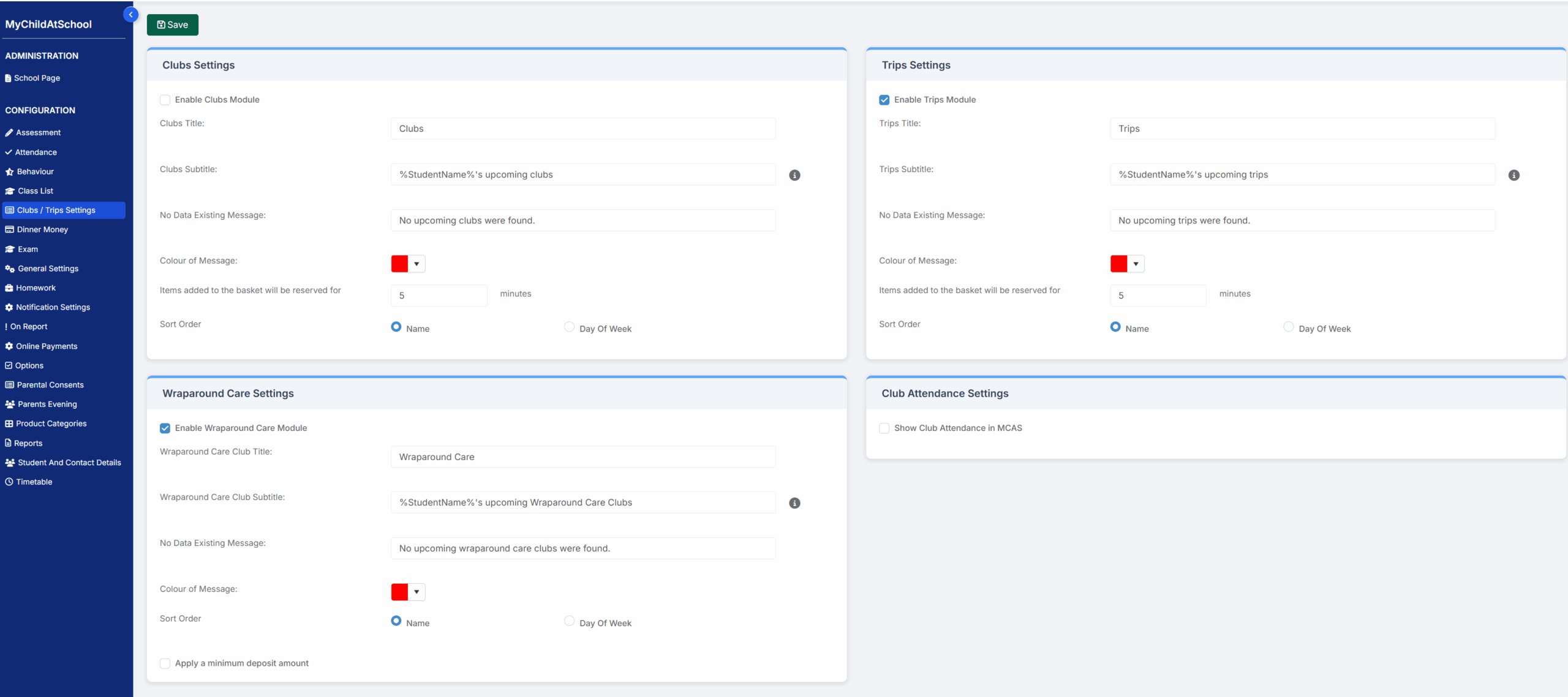 It’s possible to display details on Clubs, Trips, and Wraparound Care in MyChildAtSchool. In giving parents/guardians access to these areas you’re enabling them to book, and pay for their children to attend these activities. The following KB will details the configuration settings available for these areas.