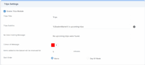Trips work in the same way that Clubs work, the settings are a mirror image of those used for Clubs. Just as with Clubs you can customise the title and subtitle that appear in the App, as well as changing the text that appears when there aren’t any trips.