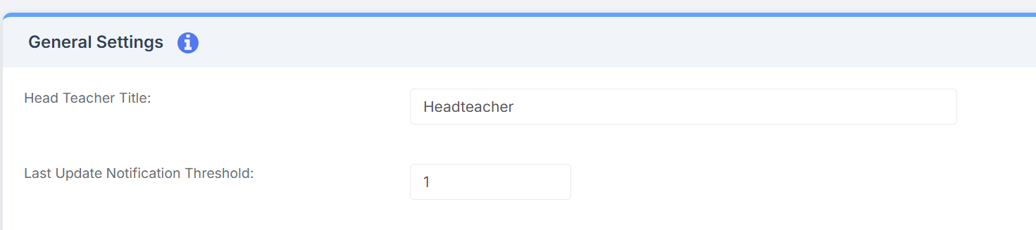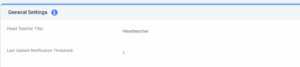 As you enter the General Settings area you’ll see the Head Teacher Title field, in this area you can customise which title appears in MyChildAtSchool. Below this field is the Last Update Notification Threshold setting, this setting allows you to adjust how many days a parent/guardian can use MyChildAtSchool for before it will ask them to check their contact information.