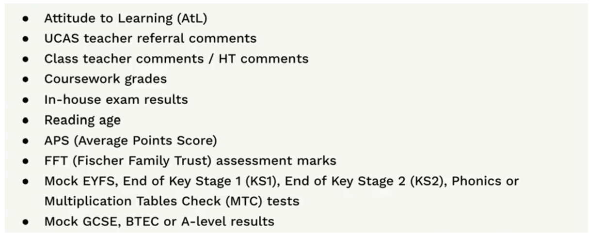 - Target – A predicted grade that has been given for a student for a particular assessment. For example, the teacher expects Jonny to get a 5 in his Maths paper for this term.