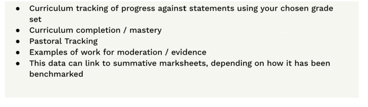 Formative Tracking focuses on the specific skills students are achieving, marked continuously. Students are marked based on their understanding of individual statements. In Arbor, we only offer Curriculum Tracking formative assessment type.