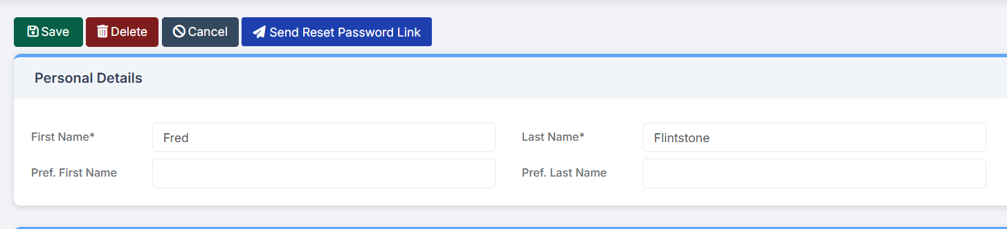 Alternatively, a system administrator can send a password reset email in the system for the user by browsing to Modules > Setup > System Security > System Users and clicking the Send Reset Password Link button.