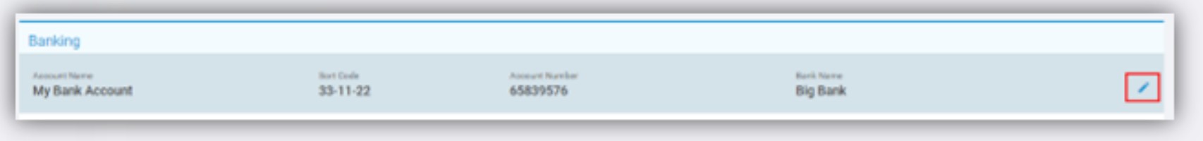Yes, the Banking tab displays the Banking Information. In this example the member of Staff has the option to Edit existing details and the changes do not have to be Approved. Move pointer over section to be amended, which will highlight and display the options.