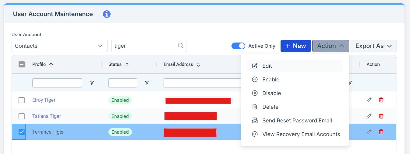 To do so, please browse to Modules > MyChildAtSchool > Administration > User Accounts to open the User Account Maintenance tool. This screen will show you the parents who have been invited to MCAS.