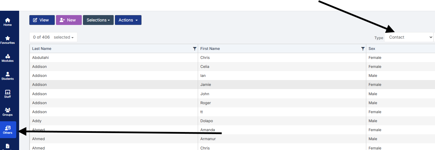 Go to Others > Contact and search for the contacts name