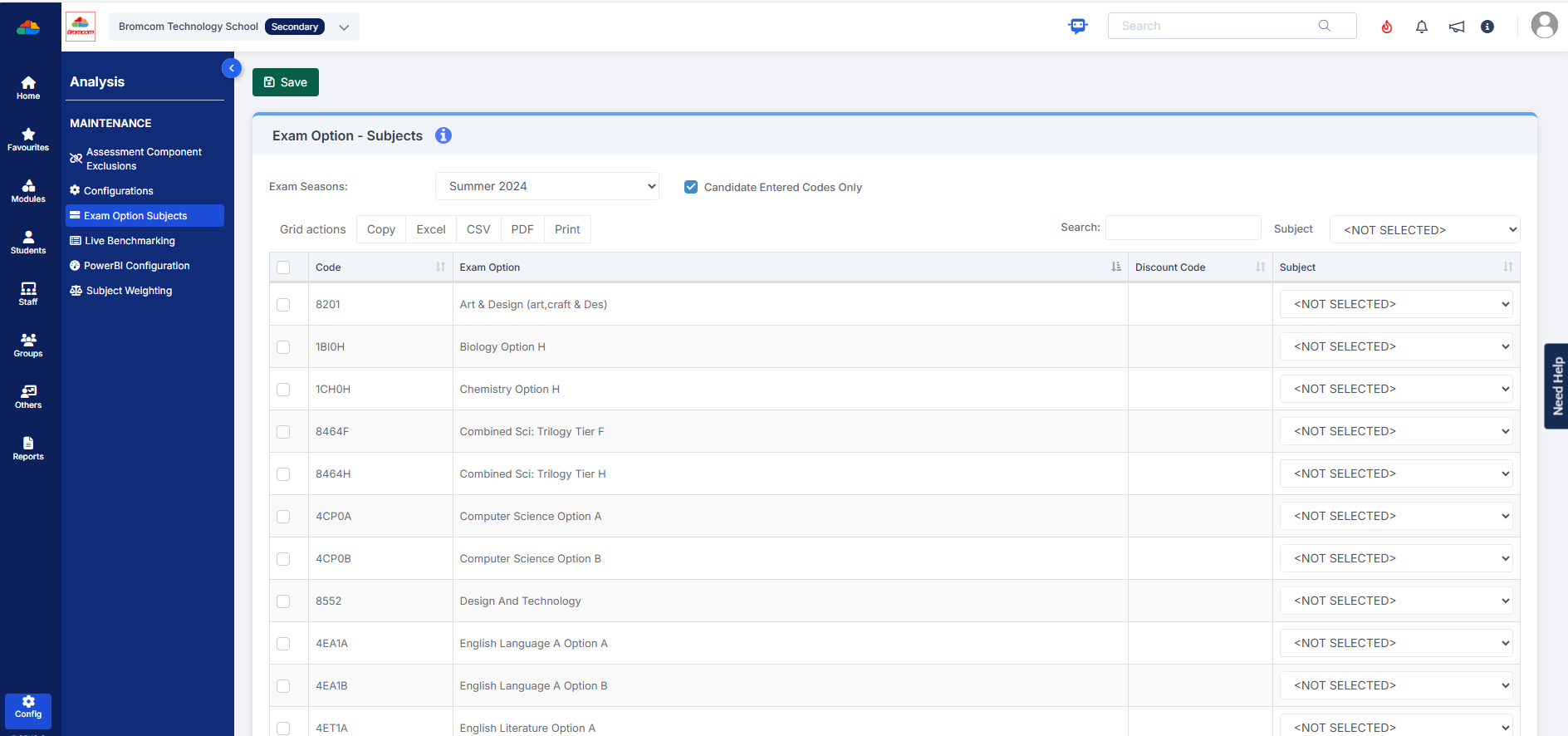 How to use Exam Option Subjects – Bromcom – Documentation Centre)