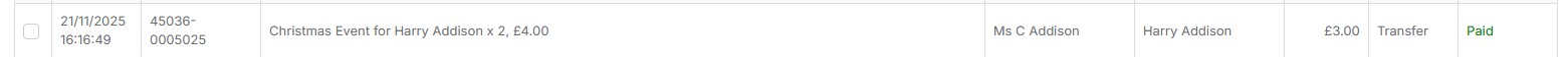 6) Please refresh your Bromcom screen and you will then see the order has reduced as in this example below from £4.00 to £3.00