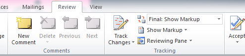 Ensure that the Reviewing section is showing in the options at the top of the screen.